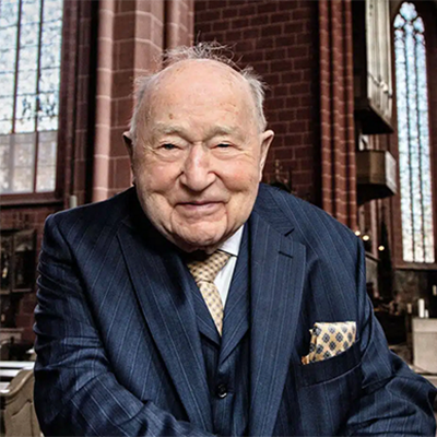 Dr. h.c. Ernst Gerhardt; der heute 104-jährige langjährige Frankfurter Stadtkämmerer war eines der Gründungsmitglieder der fwg im Jahr 1967. Seit dieser Zeit gehörte er ohne Unterbrechung, also 58 Jahre lang, dem Vorstand der fwg an. Nun wurde er von der Mitgliederversammlung zum Ehrenmitglied ernannt.