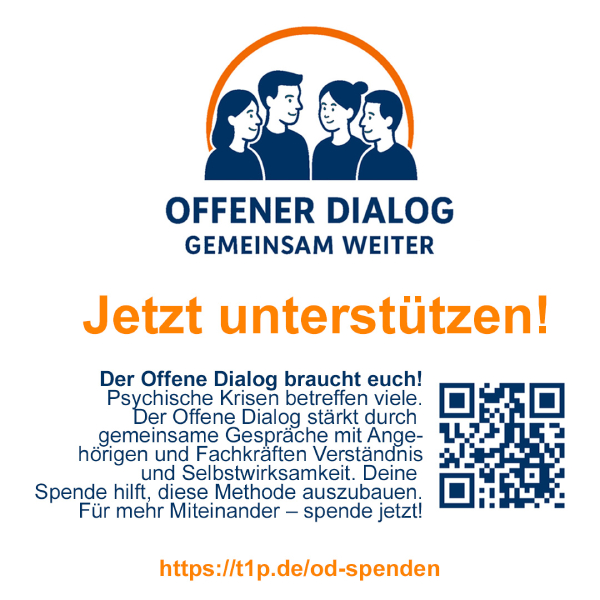Damit der Offene Dialog auch im kommenden Jahr noch mehr Menschen und ihre Netzwerke begleiten kann, ist es super hilfreich, wenn ihr unser Angebot und die Infos dazu weitertragt. Teilt unsere Inhalte, sprecht mit Kolleg*innen, Klient*innen oder im eigenen Umfeld darüber und teilt auch gerne den Spendenlink – so können wir gemeinsam Bewusstsein schaffen, noch mehr Menschen erreichen, die von moderierten Netzwerkgesprächen profitieren könnten und Spender*innen gewinnen, die unser Projekt finanziell unterstützen, damit die Netzwerkgespräche weiterhin ein kostenfreies Angebot bleiben können.
